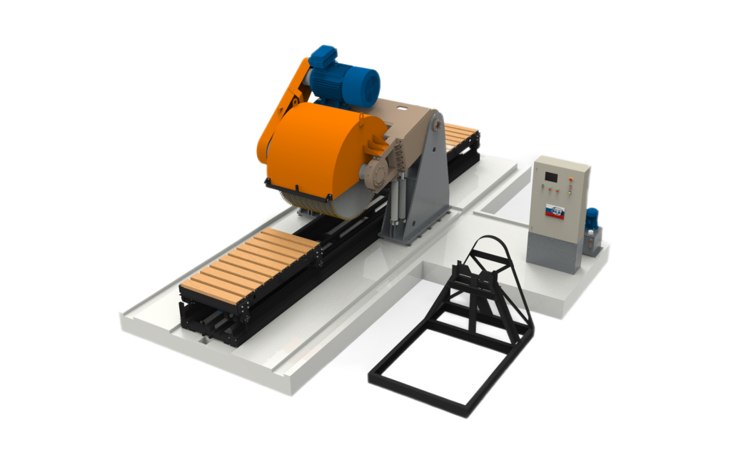 Предназначен для раскроя гранитных блоков максимальными размерами 2000*1000*600 мм на заготовки толщиной от 20 мм и применяется для массового производства бордюров и толстомерных плит*.