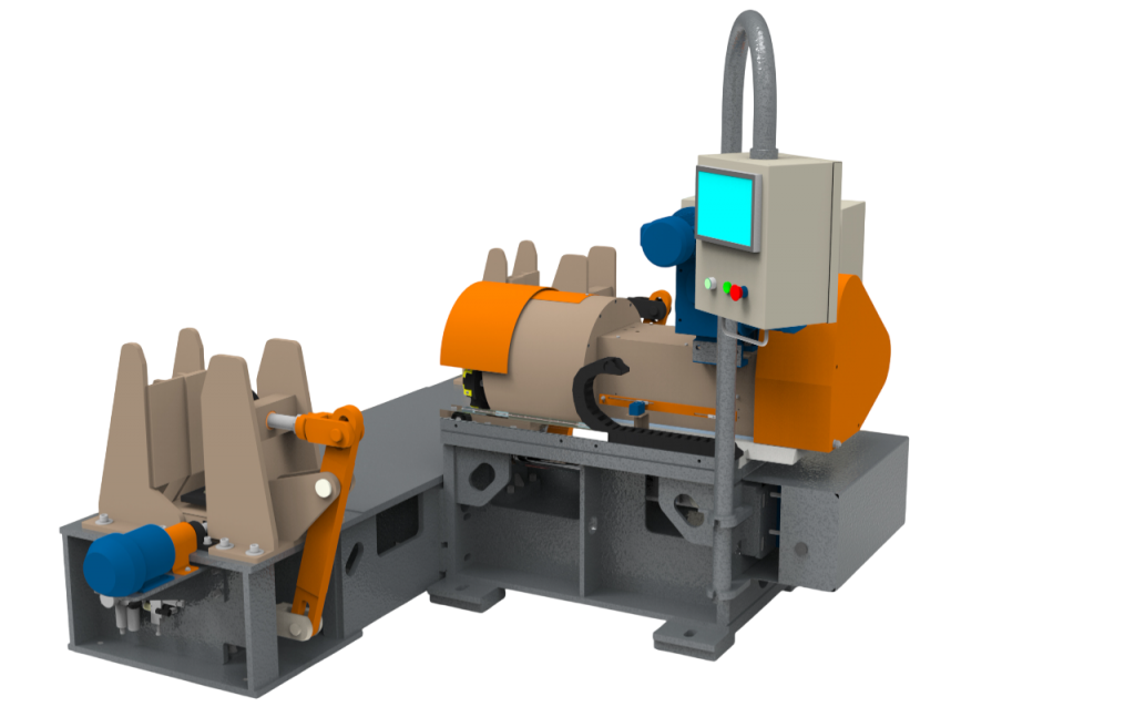 Станок оснащен датчиками позиционирования («нулевого положения», определяющим начало цикла), позволяющим работать в режиме «полуавтомат». Зажим балки — пневмоцилиндрами с пульта оператора.